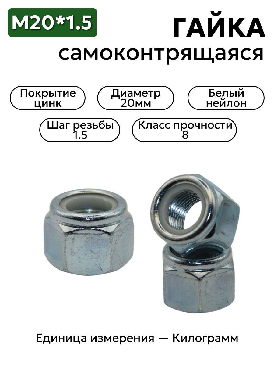 Гайка М20х1,5 с нейлоновым кольцом — это крепёжное изделие, которое используется для обеспечения прочности соединений различных металлических деталей, подвергающихся вибрационным нагрузкам. Гайка имеет шестигранную форму и впрессованное в её венчик полиамидное кольцо, выполняющее роль стопорящего элемента. При затягивании гайки упругий виток кольца создаёт натяг и увеличивает трение, обеспечивая фиксацию соединения.